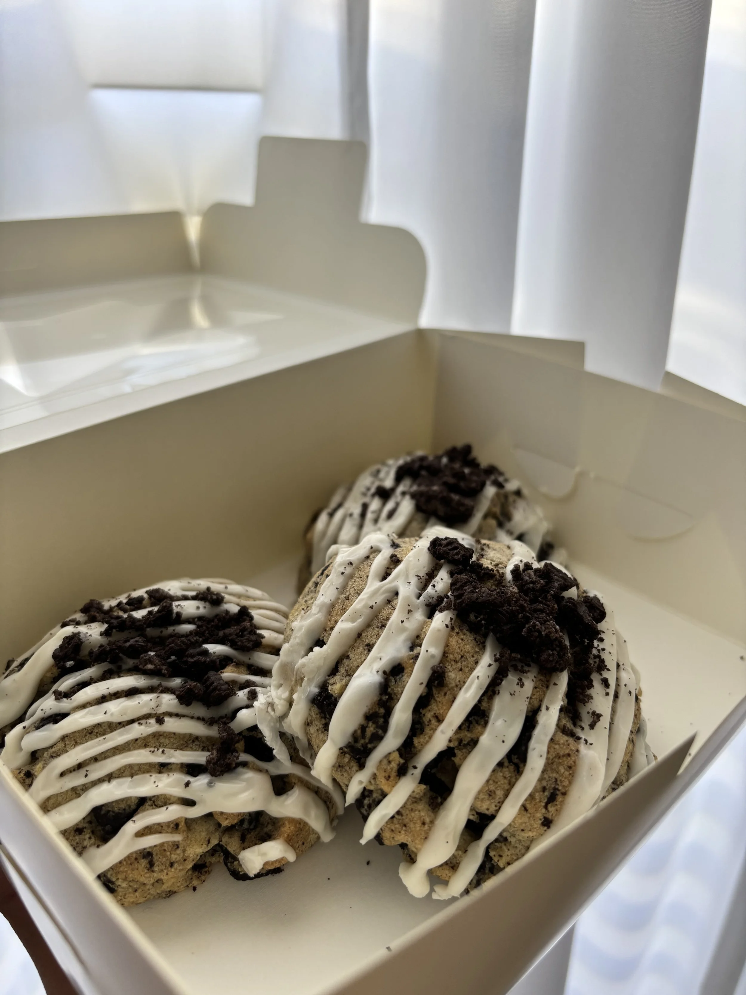 The ultimate treat for Oreo lovers! This cookies & cream cookie is packed with crushed Oreos in every bite, then topped with a smooth icing drizzle and a sprinkle of Oreo crumbs for the perfect finish.