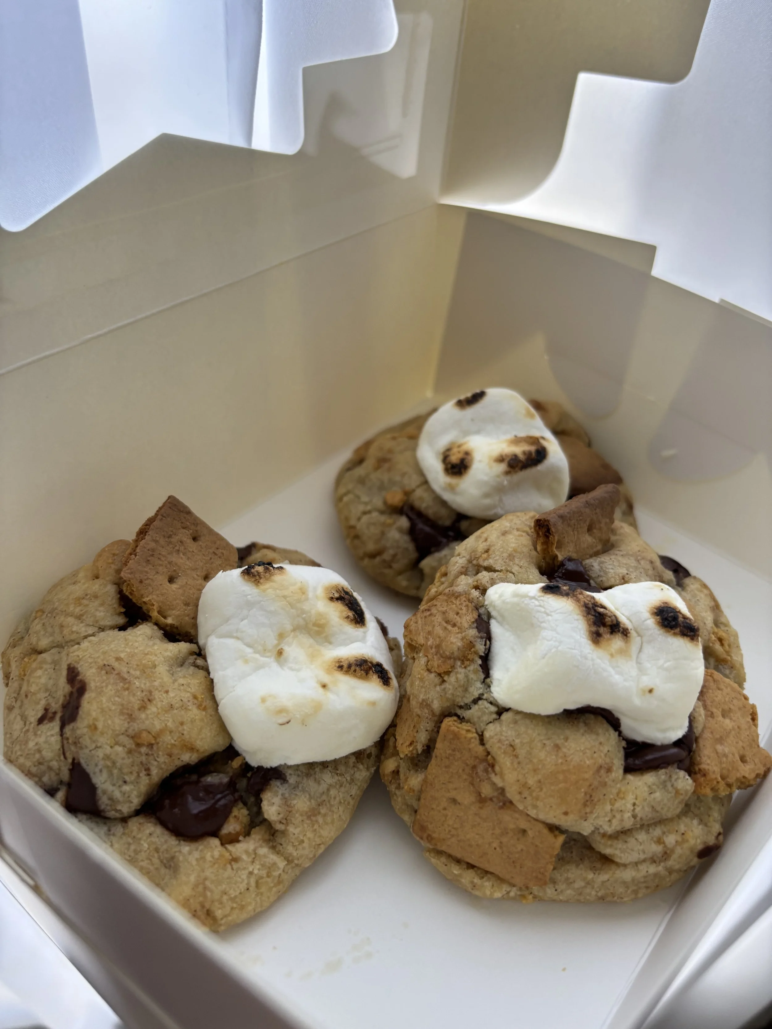 A campfire classic in cookie form! This s’mores cookie is made with rich Ghirardelli chocolate, coated in a crispy graham cracker layer, and topped with a perfectly toasted marshmallow for that gooey, melty finish.